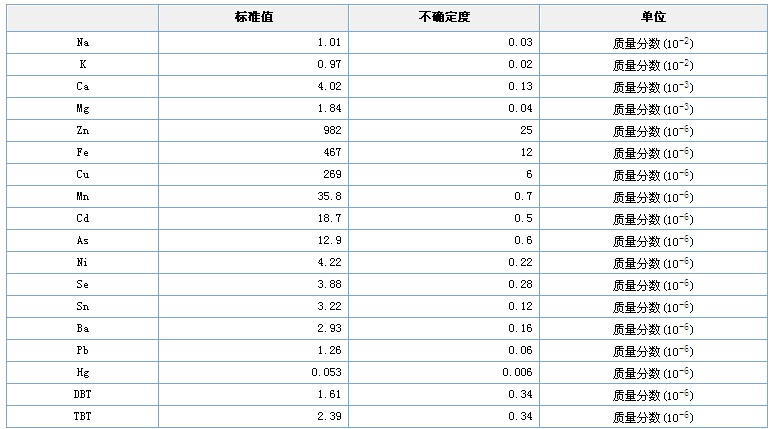 牡蛎中无机元素及有机锡形态标准物质是以牡蛎为基体,通过添加二丁基锡、三丁基锡和三苯基锡制备而成。该标准物质主要用于食品及相似生物样品检验中的无机元素和锡元素形态分析检测,用以仪器校准、方法评价与确认、分析过程质量控制以及技术仲裁与认证评价等。