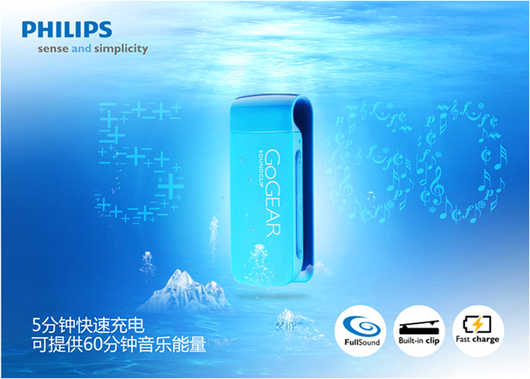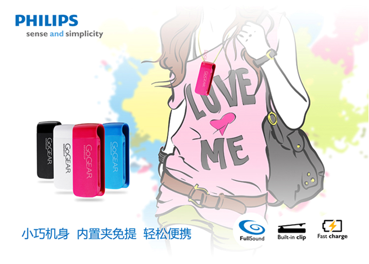 GoGear SOUNDCLIP是把飞利浦移动影音产品的 “随身利器”完全诠释。从外形到操作,飞利浦始终专注于用户体验。飞利浦摒弃复杂修饰,延续飞利浦一贯简约风格体现着“精于心,简于形”,三个按键的极致设计,简约小巧的外观,炫彩的颜色选择,请时尚随处可“夹”