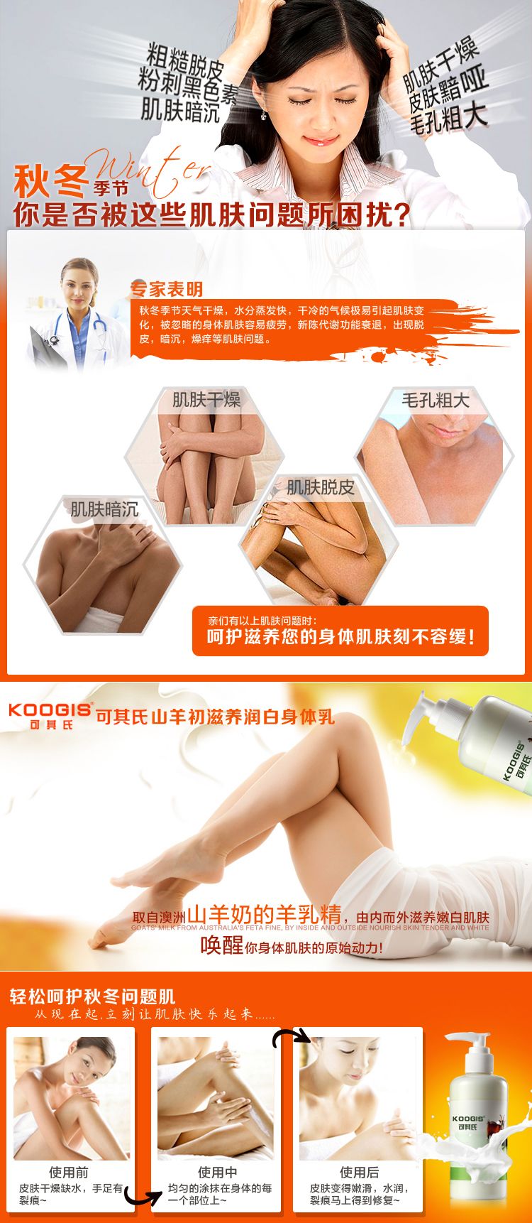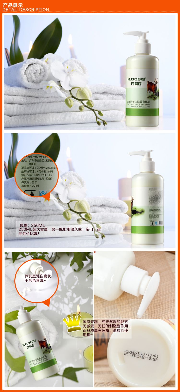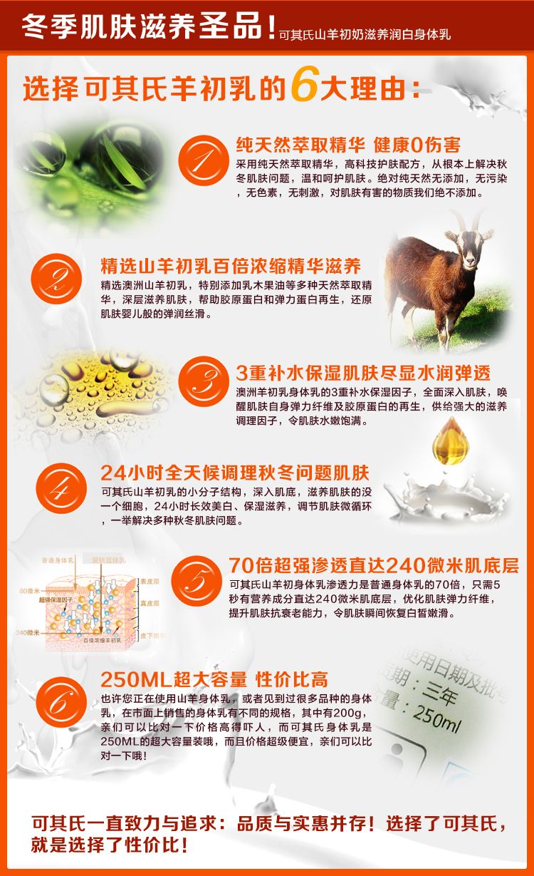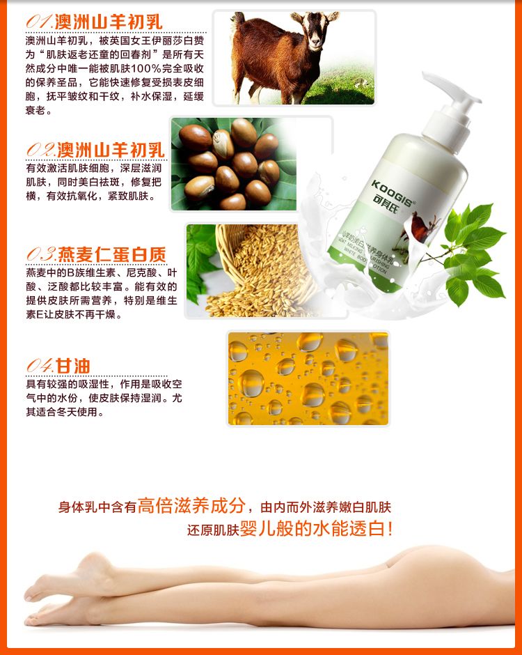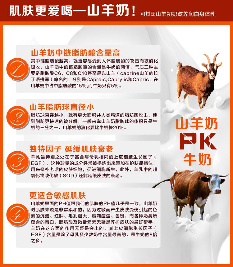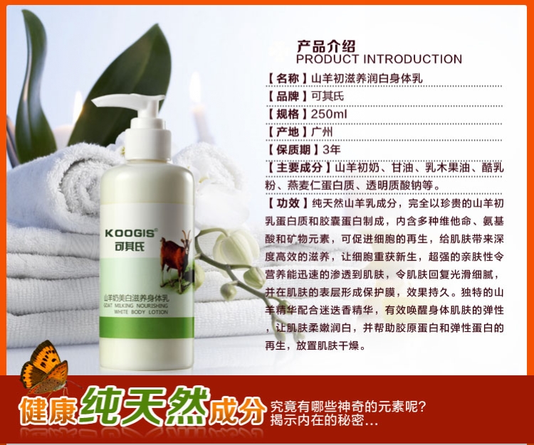积分兑换 >> 可其氏 山羊身体乳250ml沐浴液美白保湿滋润去鸡皮润肤乳香体乳