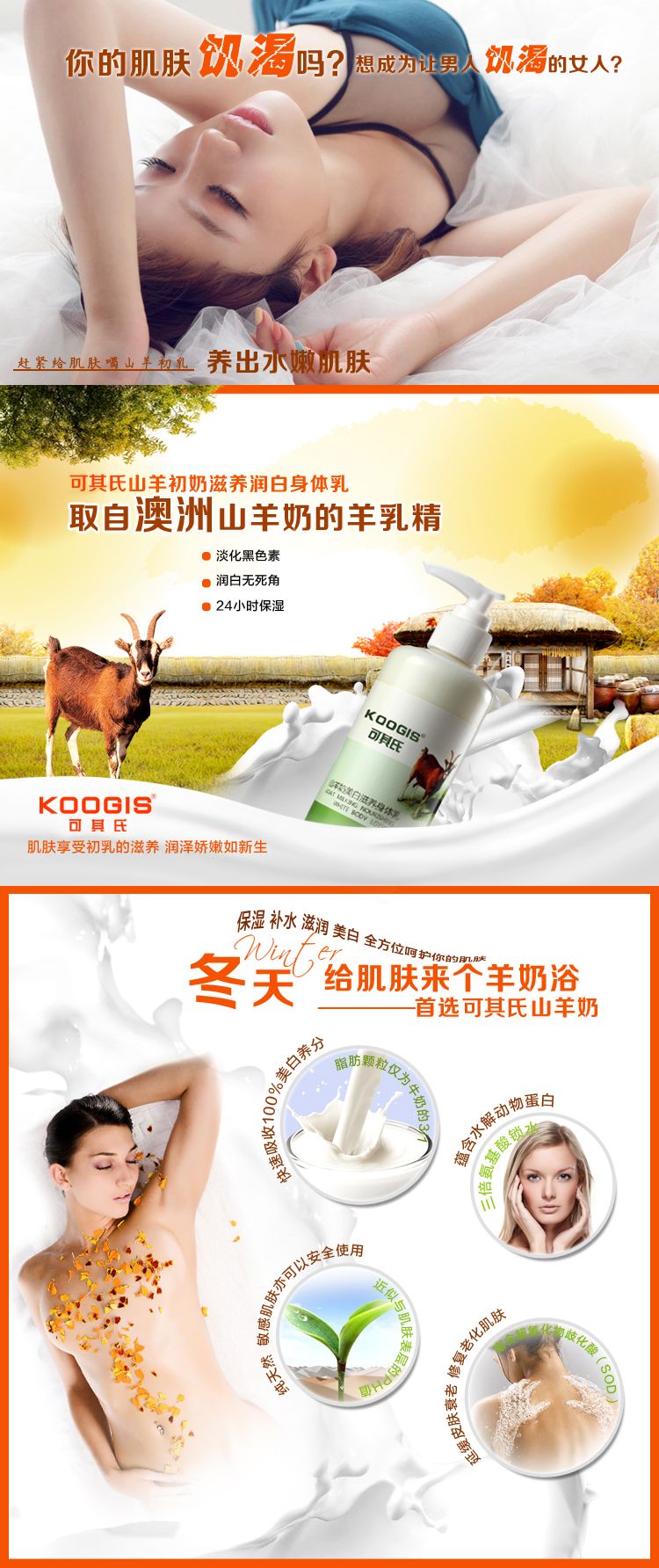 可其氏 山羊身体乳250ml沐浴液美白保湿滋润去鸡皮润肤乳香体乳