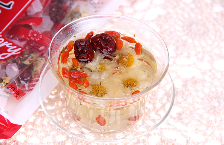 1、取1小袋菊花,放入400ml左右玻璃杯中。