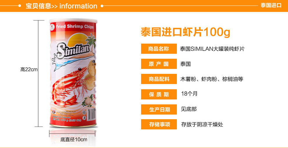 积分兑换 >> 泰国Similan虾片100g 薯片类进口食品休闲零食 微辣味小吃 一罐装