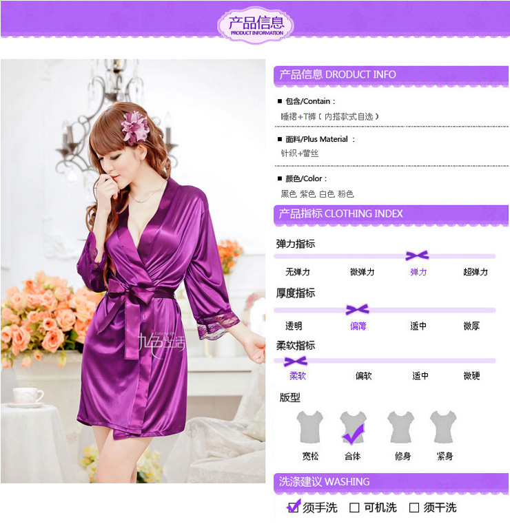 积分兑换 >> LOVEBBF 性感睡袍睡衣家居服两件套透明蕾丝女吊带裙套装SY-04 紫色睡袍+吊带裙 均码 1040787666