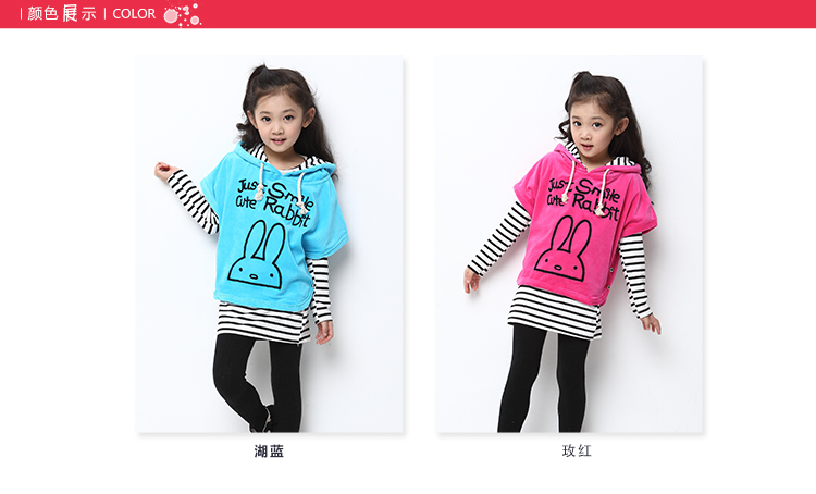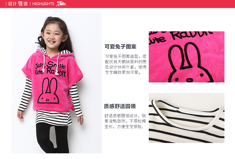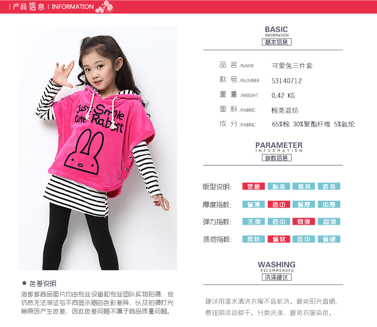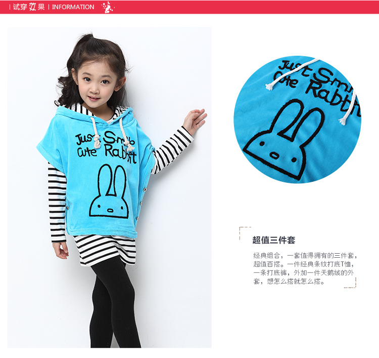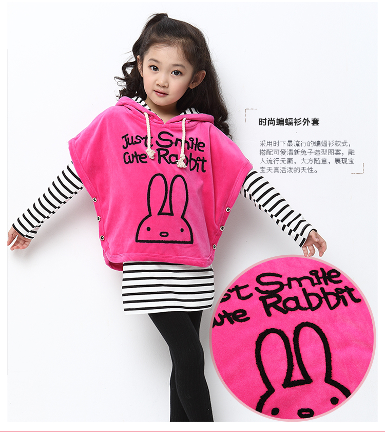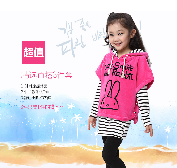 积分兑换 >> 海多多/Hidodo童装2014秋款新品女童套装韩版可爱兔三件套休闲儿童女孩大童秋装 玫红 160