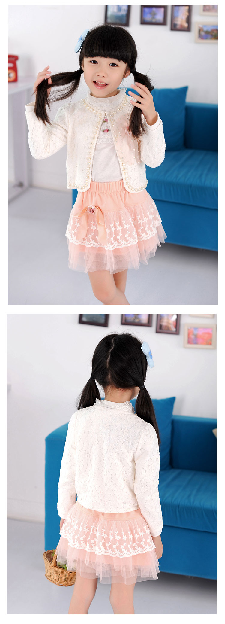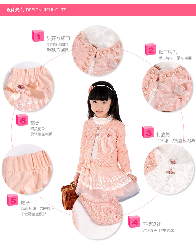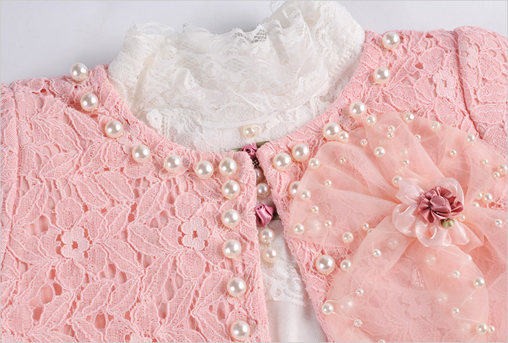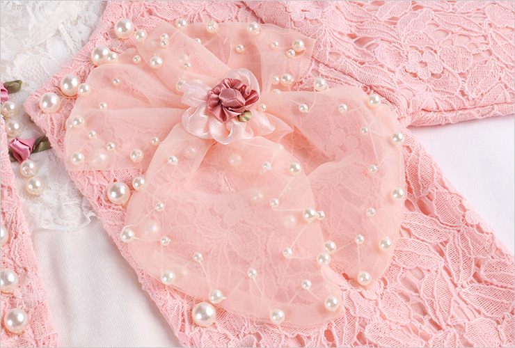开衫细节:手工缝制的超多璀璨珍珠,优雅气质,非常浪漫,小公主们的最爱。