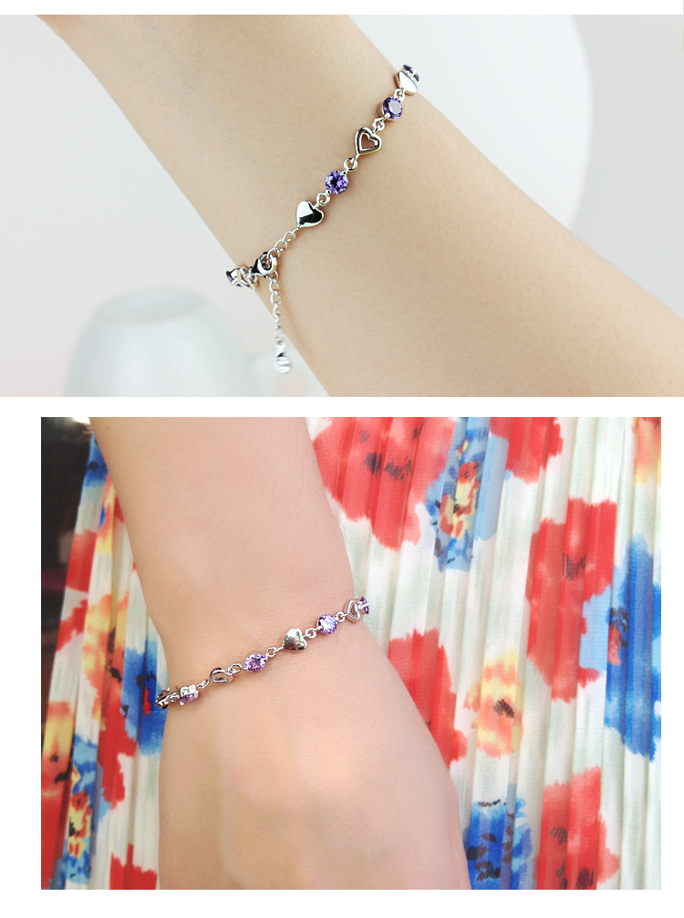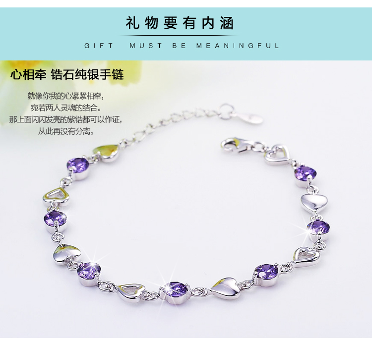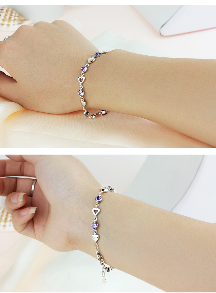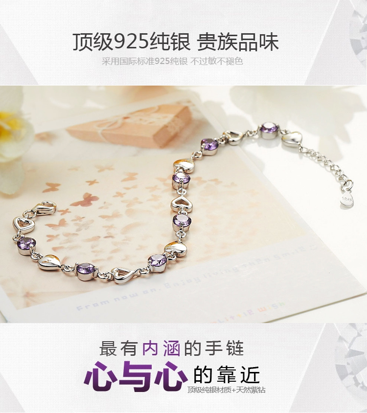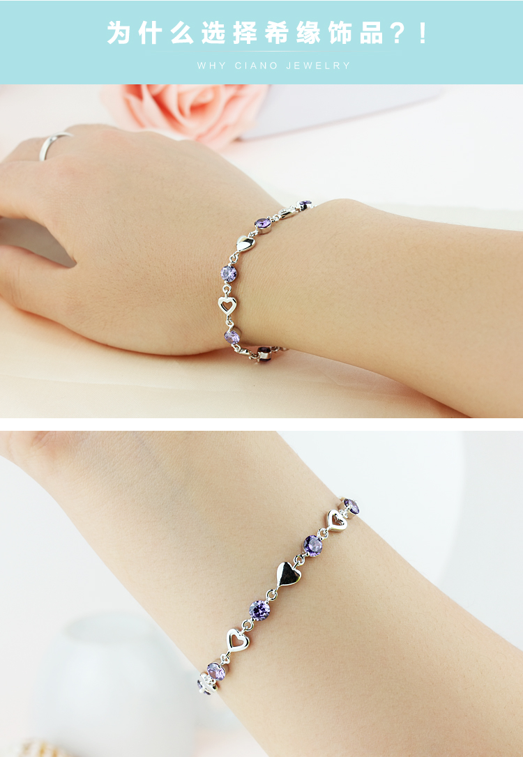 积分兑换 >> 希缘 925纯银手链女款 紫水晶心形手连韩版时尚银饰品 送女友送老婆生日礼物首选 长约19CM