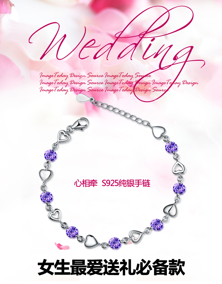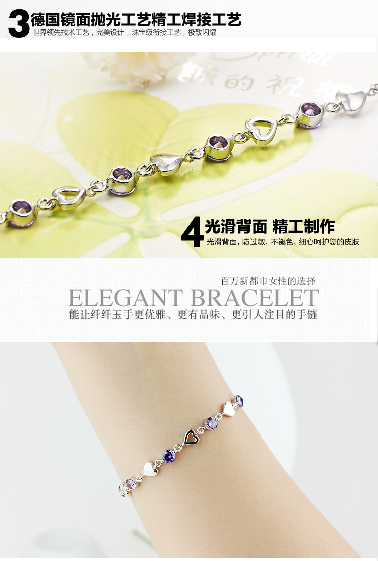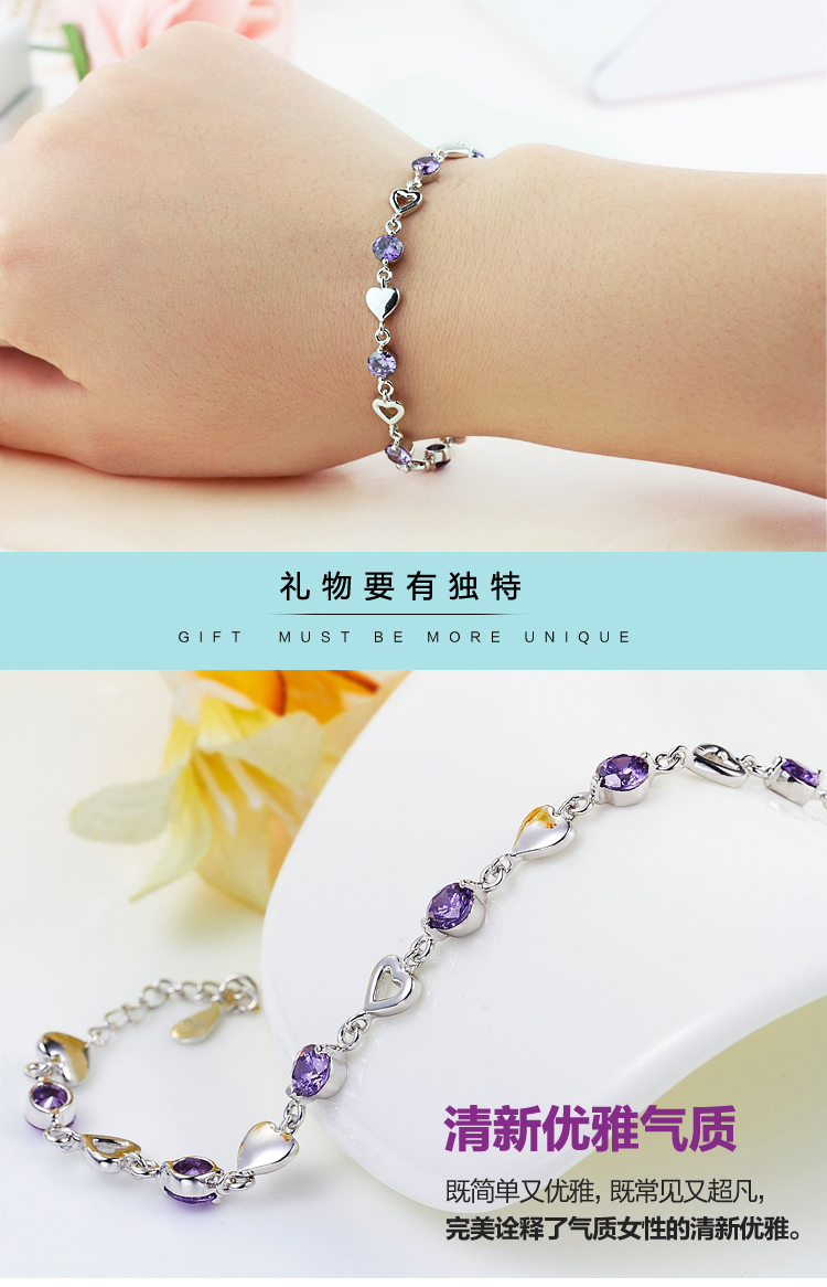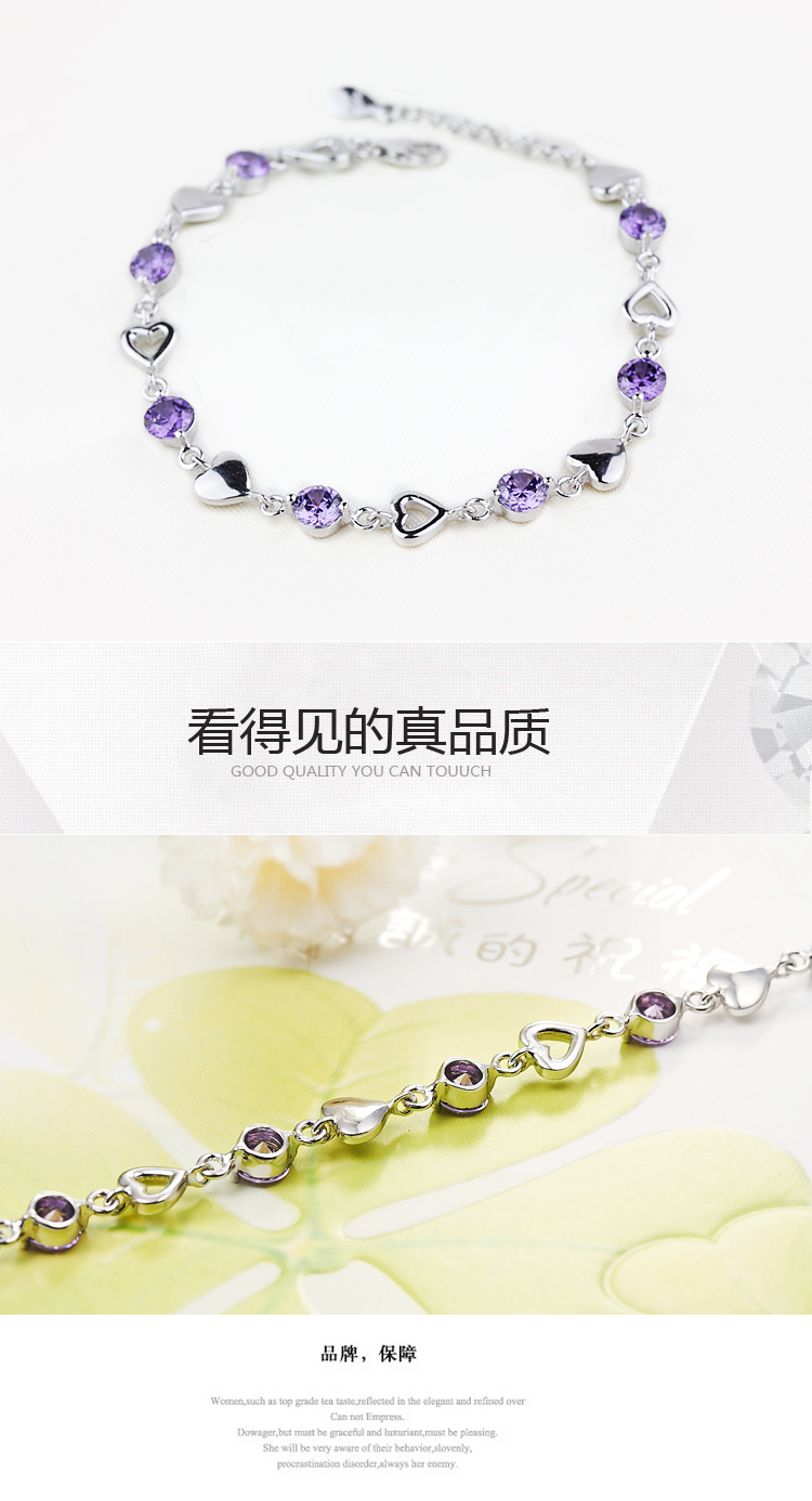 积分兑换 >> 希缘 925纯银手链女款 紫水晶心形手连韩版时尚银饰品 送女友送老婆生日礼物首选 长约19CM