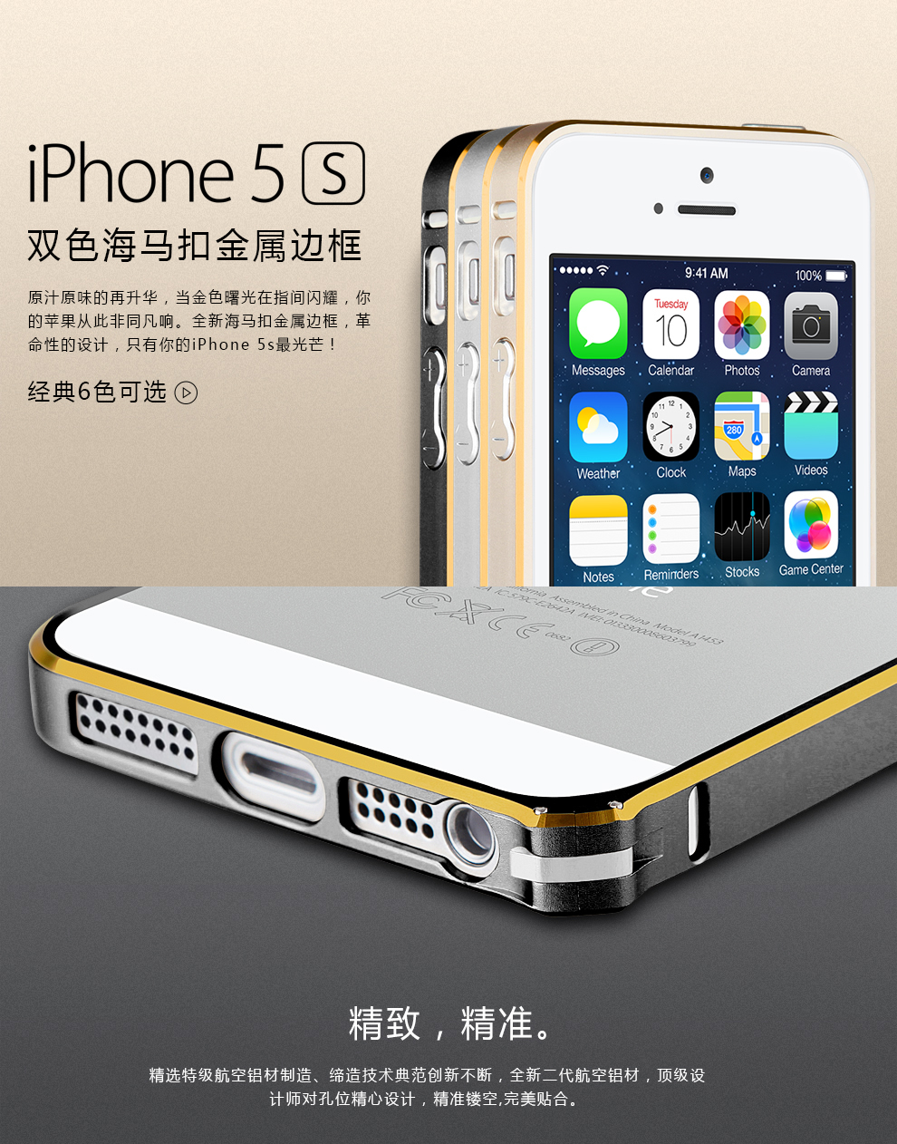 积分兑换 >> 萝莉 手机壳金属边框套装(表扣版+双面贴膜)适用于苹果iphone5/5s 金+金边+贴膜