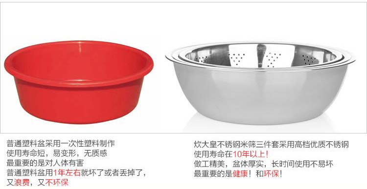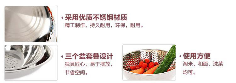 积分兑换 >> 炊大皇 不锈钢厨房三件套(和面盆/洗菜盆/淘米盆)