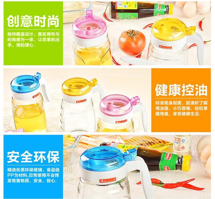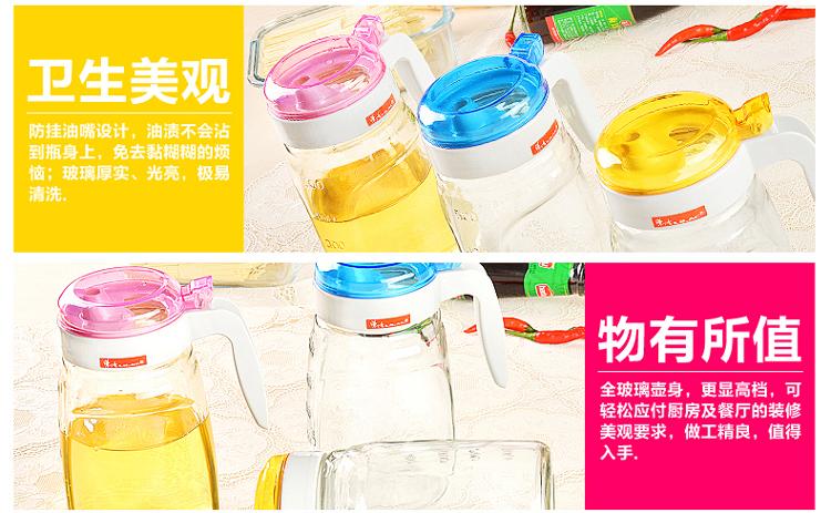 品牌:紫丁香 名称:贝尔玻璃控油壶 型号:JA650 容量:650ML 材质:瓶体:玻璃,盖子:PS,手柄:食品级PP料 包装方式:彩盒独立包装 适用范围:适合家庭,餐厅盛装油、醋、酱油,料酒等液体调料品 毛重:0.42KG 颜色:黄色、红色、蓝色随机发放