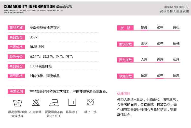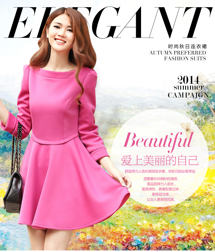 积分兑换 >> 缇艾沫 Tiamo2014秋季新款弹力修身收腰显瘦七分袖优雅韩版连衣裙大摆裙9502 浅紫色 XL